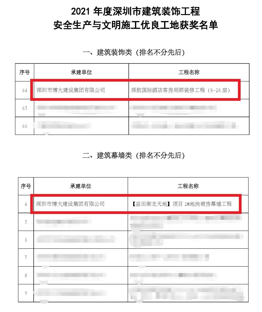 博大建設集團榮獲兩項深圳市建筑裝飾工程安全生產(chǎn)與文明施工優(yōu)良工地