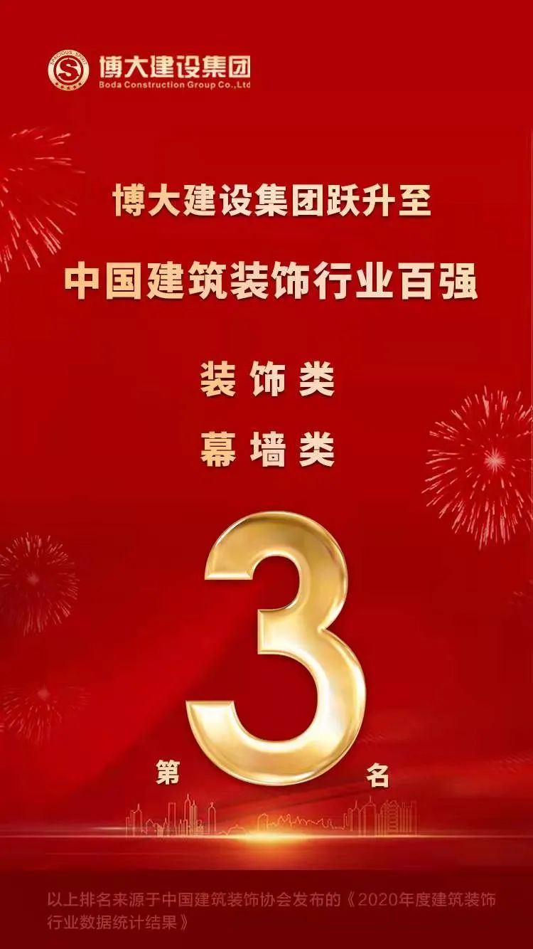 全國第三!博大建設集團全國裝飾行業百強排名再次躍升!