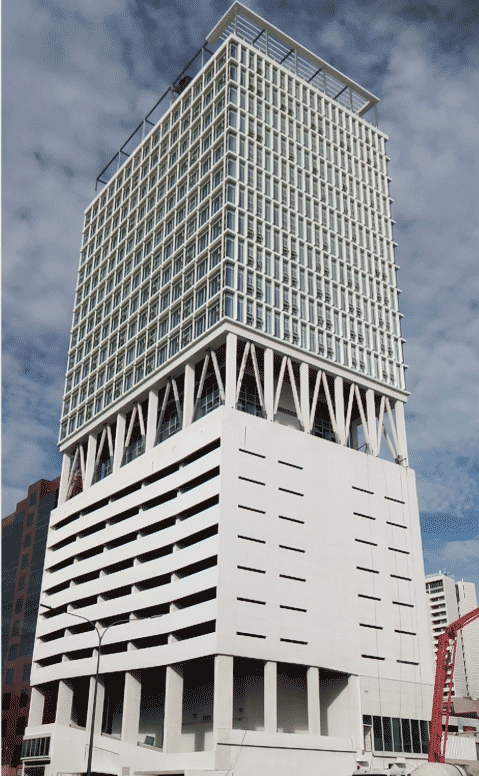 項目位于巴布亞新幾內亞首都莫爾茲比港TOWN區(qū)CBD核心地段,總占地面積1808平方米,規(guī)劃總建筑面積2.9萬平方米,是“南太平洋第一高樓”。博大施工范圍包括但不限于幕墻工程、遮陽板系統(tǒng)、幕墻本身的防雷接地裝置、幕墻龍骨、幕墻封邊封頂等。