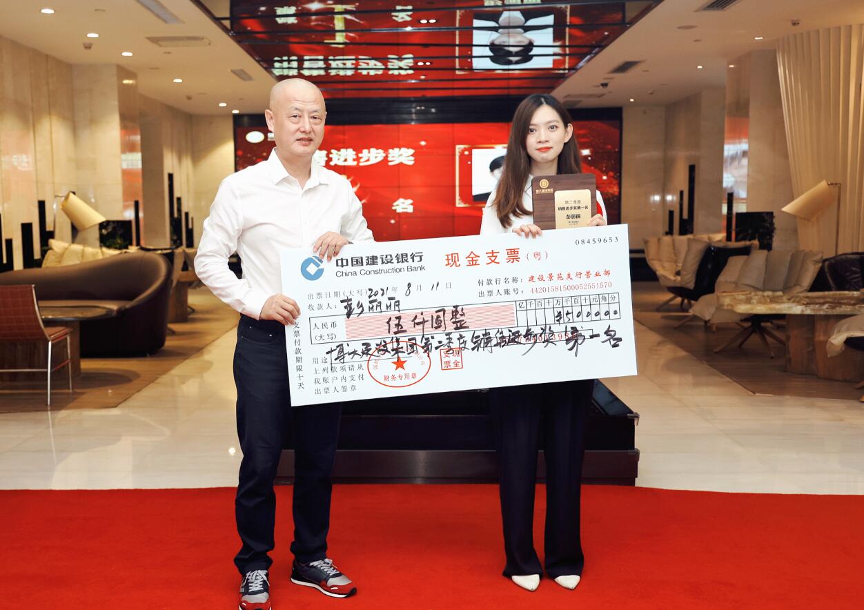 集團(tuán)董事、常務(wù)副總裁沈雁飛為銷售進(jìn)步獎(jiǎng)獲得者彭麗麗頒獎(jiǎng)